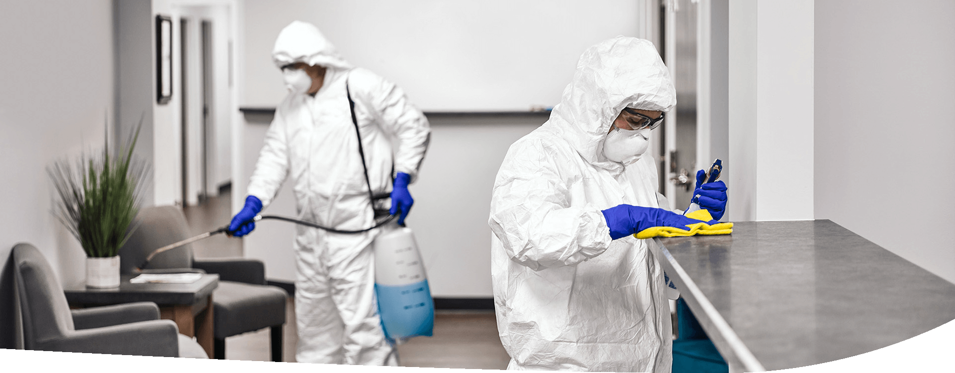 COVID-19 recommended cleaning and sanitizing for offices and businesses reopening after lockdown.