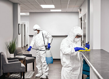 COVID-19 recommended cleaning and sanitizing for offices and businesses reopening after lockdown.